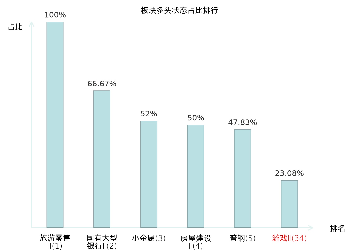 从主力宝信号数据分析,星辉娱乐所属的游戏Ⅱ板块中共6只股票处于主力多头状态,主力多头状态占比在全行业中排名第34位,较昨日下降2位。较高的排名表明主力对于该板块整体看多意愿较强,此次排名小幅下降可能反映主力对该板块态度的微调。全市场所有行业板块中主力多头状态占比排名中,旅游零售Ⅱ板块位居第一;其他电源设备Ⅱ板块名次提升最快,较昨日上升55位。这些变动揭示了不同行业间主力资金配置倾向的变化,为投资者评估板块相对强度及潜在趋势提供了客观依据。