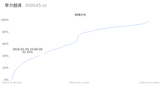 300045华力创通2026年01月05日成交140.15万手,成交金额41.27亿,相较昨日放量18.63万手,换手率27.14%,成交活跃。