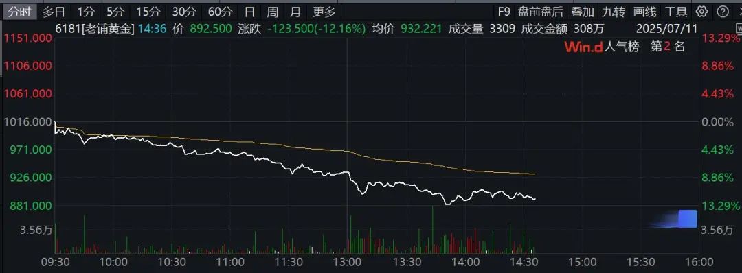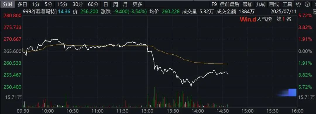 港股个股方面,老铺黄金午后跳水,盘中跌逾13%,该股于本周二一度触及1108港元,创出历史新高。泡泡玛特午后持续走弱,一度跌超5%。