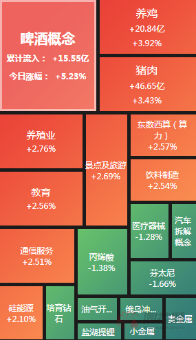 09:55 啤酒股大涨,青岛啤酒涨超9%,惠泉啤酒、燕京啤酒涨超7%,重庆啤酒涨超6%。