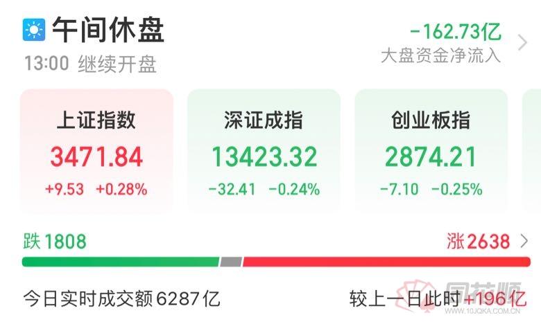 指数早盘低位震荡,截至午盘,沪指涨0.28%,深成指跌0.24%,创业板指跌0.25%。板块上,啤酒饮料、养殖业、东数西算、通信服务、跨境支付涨幅居前,锂矿、小金属、化工、油气回调。两市成交额半日达6000亿元,北向资金净流入近30亿元。两市超2600只个股上涨,46只个股涨停,赚钱效应偏弱。