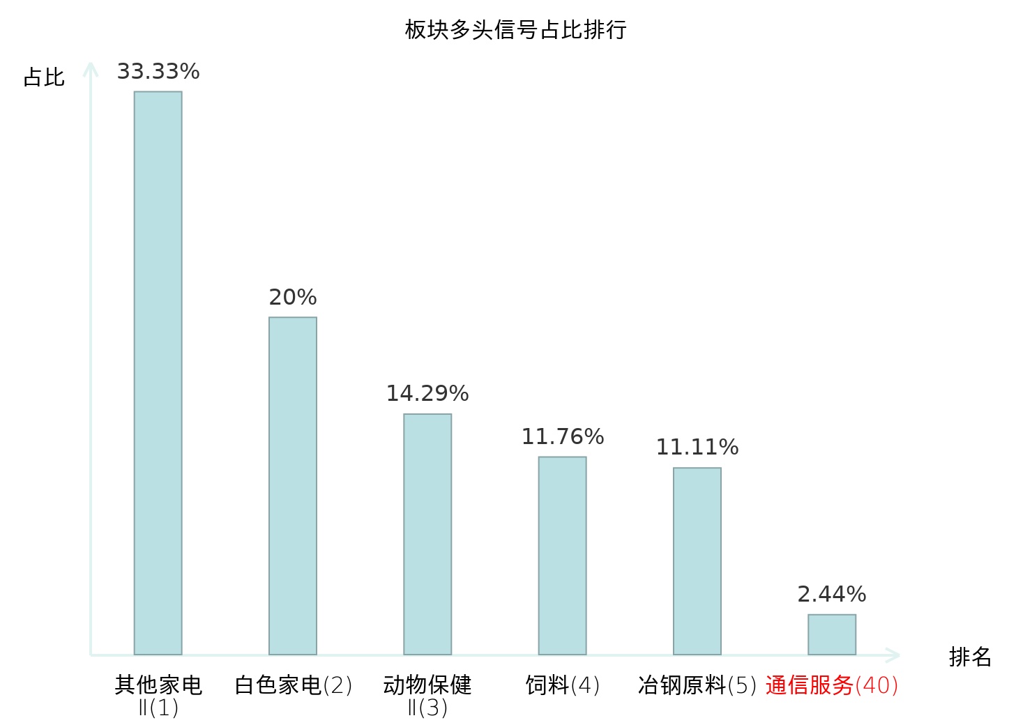 全市场所有行业板块中主力多头信号占比排名中,其他家电Ⅱ板块位居第一。其他家电Ⅱ板块名次提升最快,较昨日上升128位。