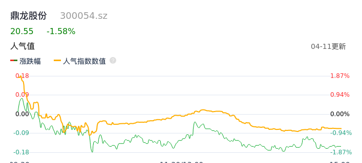 04月11日,鼎龙股份收报20.55,股价涨幅-1.58%,成交金额1.39亿元,换手率0.92%。
