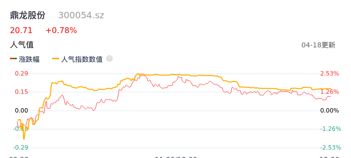 04月18日,鼎龙股份收报20.71,股价涨幅0.78%,成交金额1.16亿元,换手率0.76%。