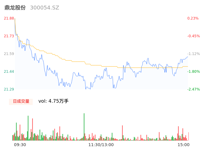 04月02日,鼎龙股份收报21.56,股价涨幅-1.24%,成交金额1.02亿元,换手率0.65%。