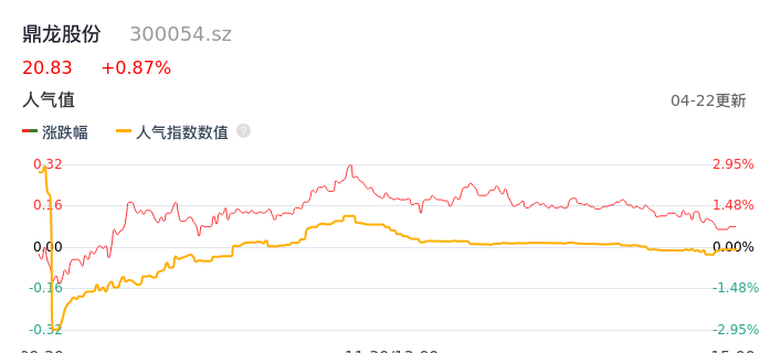 04月22日,鼎龙股份收报20.83,股价涨幅0.87%,成交金额1.51亿元,换手率0.98%。
