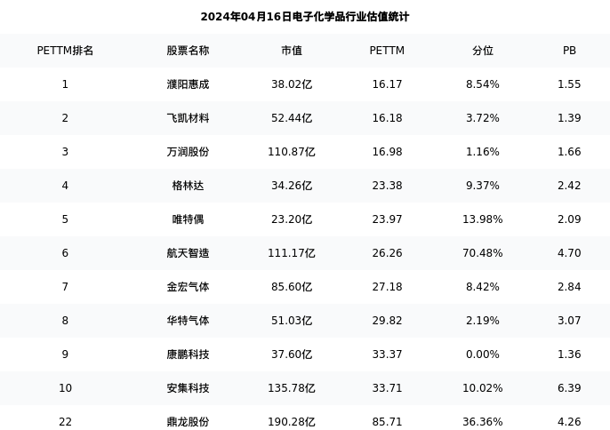从估值角度看:鼎龙股份最新市盈率PETTM为85.71,在行业内排名22/32,处于36.36分位。