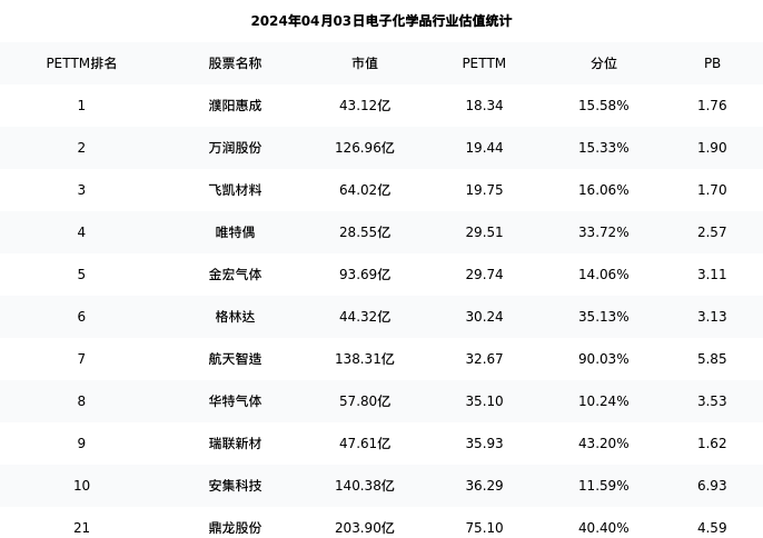 从估值角度看:鼎龙股份最新市盈率PETTM为75.10,在行业内排名21/32,处于40.40分位。