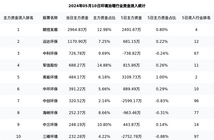 从主力资金流向来看,环境治理行业今日主力资金流入13.33亿元,在所有申万二级行业中排名:38/131。