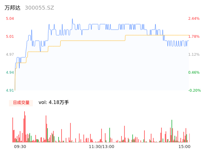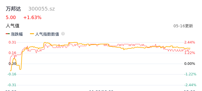 05月16日,万邦达收报5.00,股价涨幅1.63%,成交金额2091.59万元,换手率0.67%。