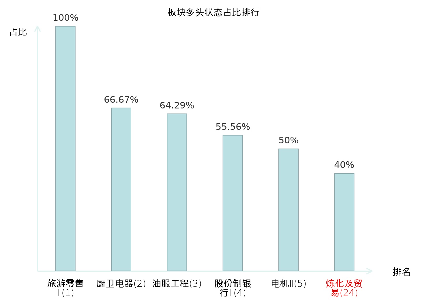 全市场所有行业板块中主力多头状态占比排名中,旅游零售Ⅱ板块位居第一。航海装备Ⅱ板块名次提升最快,较昨日上升78位。