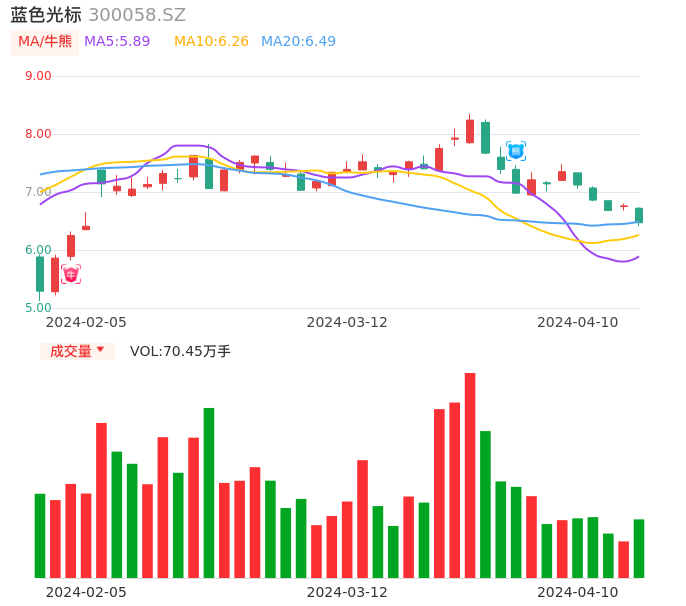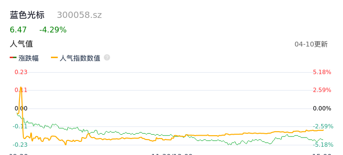 04月10日,蓝色光标收报6.47,股价涨幅-4.29%,成交金额4.60亿元,换手率3.06%。