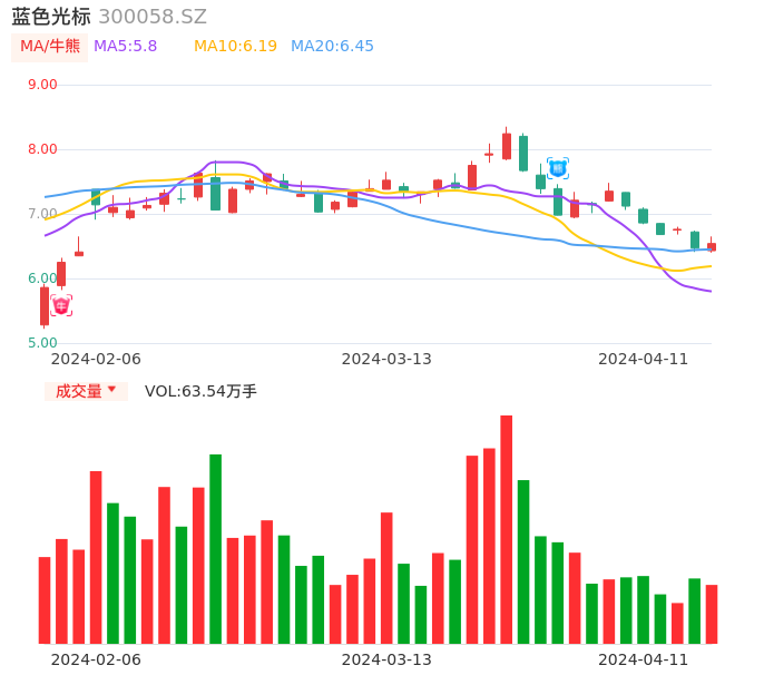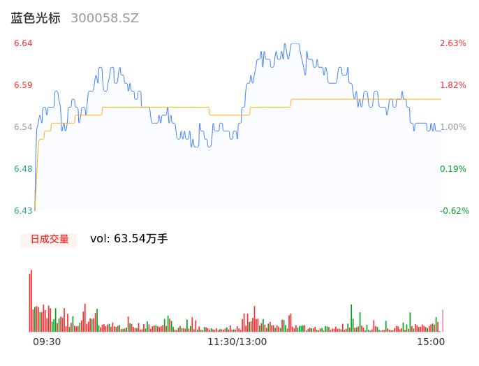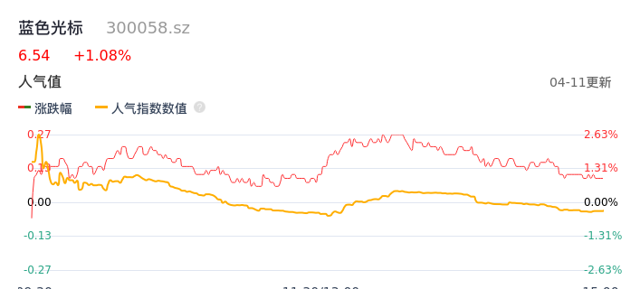04月11日,蓝色光标收报6.54,股价涨幅1.08%,成交金额4.17亿元,换手率2.76%。