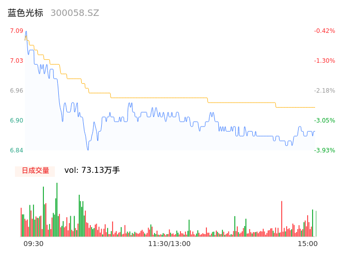 04月03日,蓝色光标收报6.86,股价涨幅-3.65%,成交金额5.06亿元,换手率3.17%。