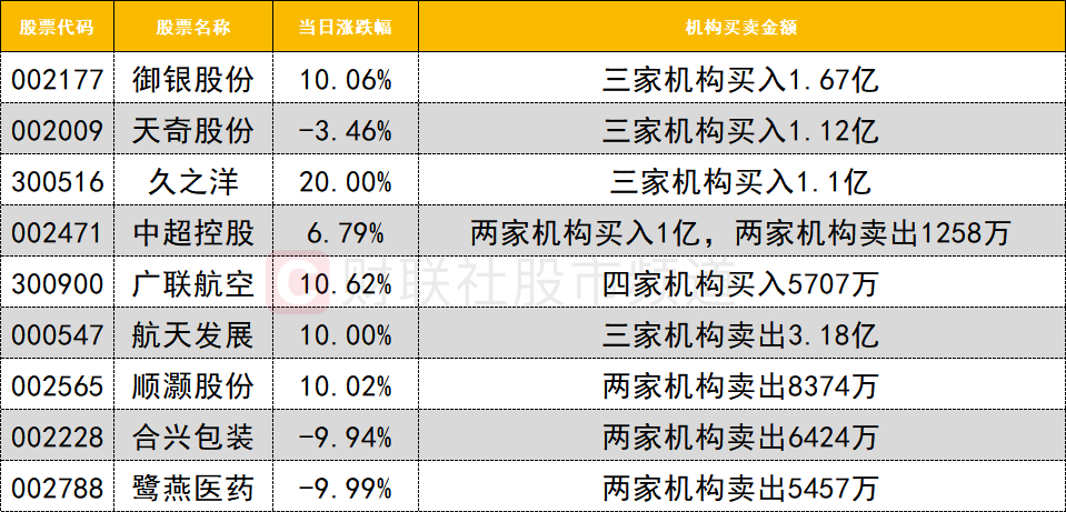 今日龙虎榜机构活跃度较高,4天3板的航天发展遭机构大量甩卖,三家机构卖出3.18亿。