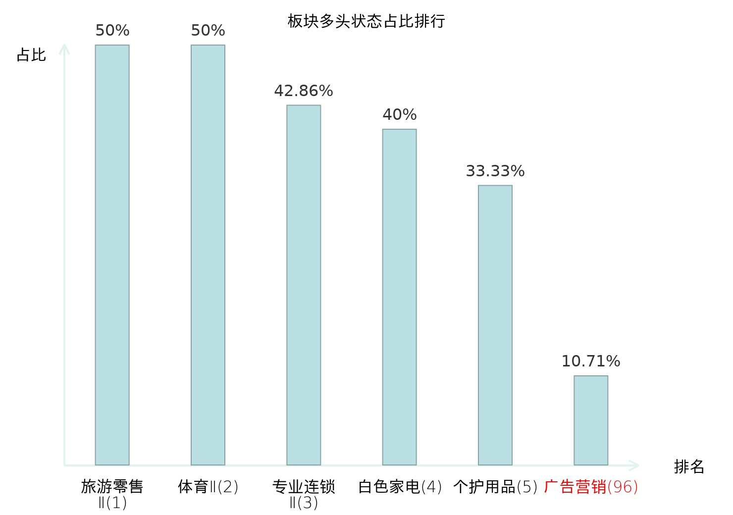 从主力宝信号数据分析,蓝色光标所属的广告营销板块中共3只股票处于主力多头状态,主力多头状态占比在全行业中排名第96位,较昨日上升3位。较高的排名表明主力对于该板块整体看多意愿较强,此次排名小幅上升可能反映主力对该板块态度趋于积极;全市场所有行业板块中,旅游零售Ⅱ板块的主力多头状态占比最高,位居第一;化学原料板块名次提升最快,较昨日上升35位。这些变动体现了主力资金在不同行业间的配置倾向变化,为投资者观察市场结构性动向提供了客观依据。