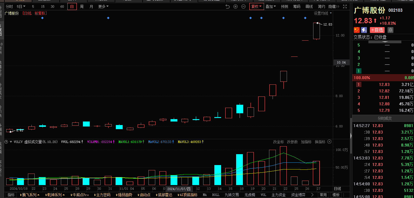 市场的情绪一触即发,增量资金进场多点进攻,新题材谷子经济成为资金宣泄口,其中广博股份开盘暴力拉板,昨日被兑现的金运激光、甚至还有北交所的柏星龙都有资金去做修复转强,题材成为日内领涨的题材之一