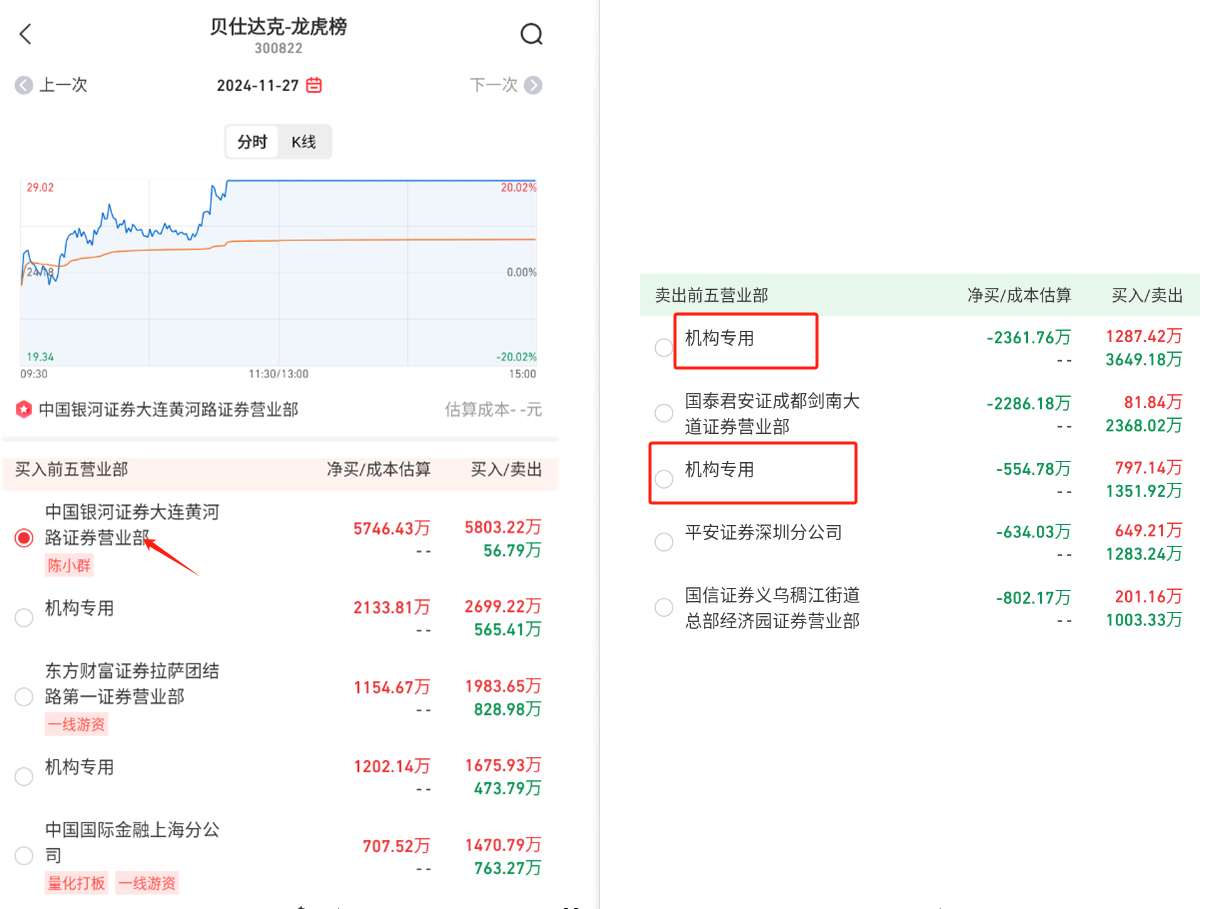 从买卖情况来看,量化加陈小群领衔,还有买三的家人们,从陈小群这里的反馈去看,他在猛干高位的个股,这就说明他看好这里出弹性行情