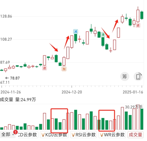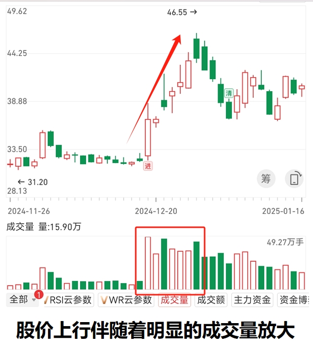 股价上涨但成交量逐渐萎缩,可能预示上涨动力不足,走加速赶顶,即将回调。