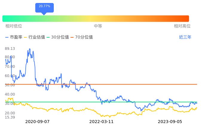 东方财富当前市盈率PETTM为30.39,在所属的证券中,市盈率PETTM排23名。前5名分别为国泰君安PETTM11.99、华泰证券PETTM12.12、国信证券PETTM13.82、广发证券PETTM13.99、中国银河PETTM14.30。从PETTM估值走势数据来看,东方财富当前市盈率PETTM为30.39,超过近3年20.77%的历史数据。