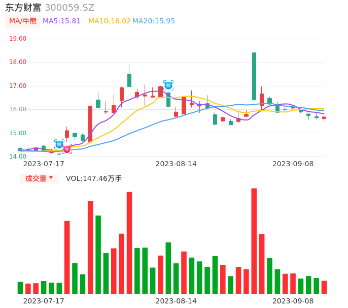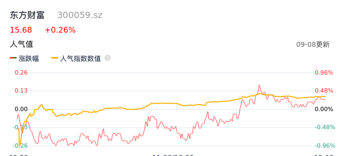 09月08日,东方财富收报15.68,股价涨幅0.26%,成交金额22.99亿元,换手率1.10%。