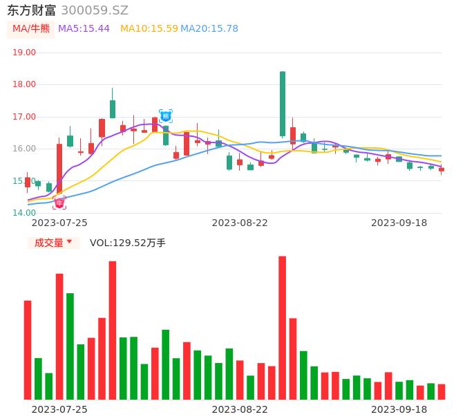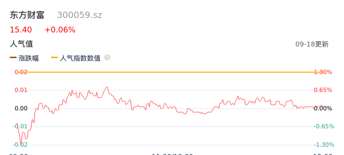 09月18日,东方财富收报15.40,股价涨幅0.06%,成交金额19.94亿元,换手率0.96%。