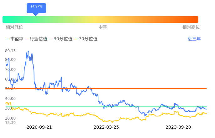 2023年09月20日,东方财富下跌0.39%收于15.25,今日成交金额14.86亿元。下文将从市盈率PETTM、市净率PB、市现率3个角度去分析公司估值情况。