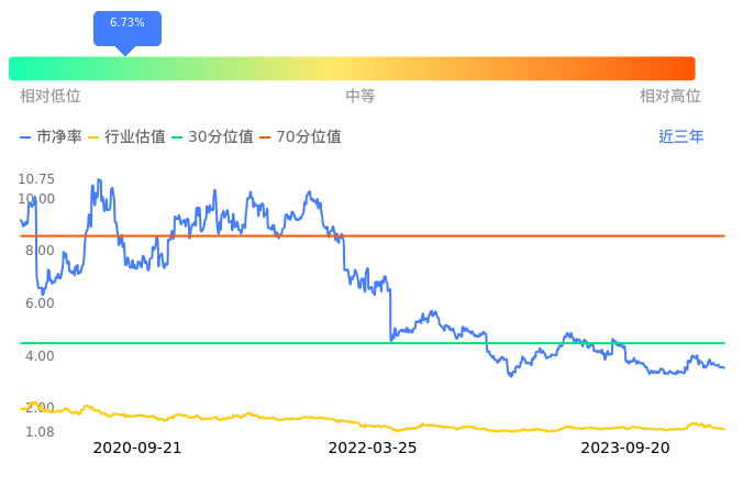东方财富当前市净率PB为3.53,在所属的证券中,市净率PB排47,前五名分别为海通证券市净率0.80、国泰君安市净率0.80、国元证券市净率0.89、华创云信市净率0.92、华西证券市净率0.96。东方财富当前市净率PB为3.53,超过近3年6.73%的历史数据。