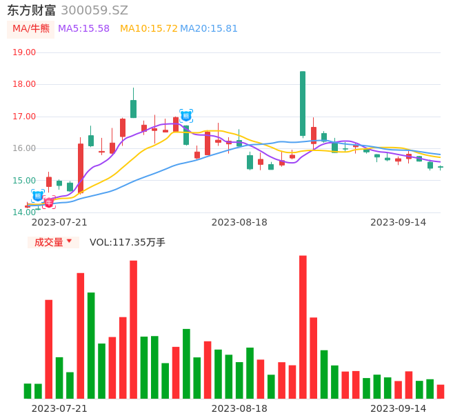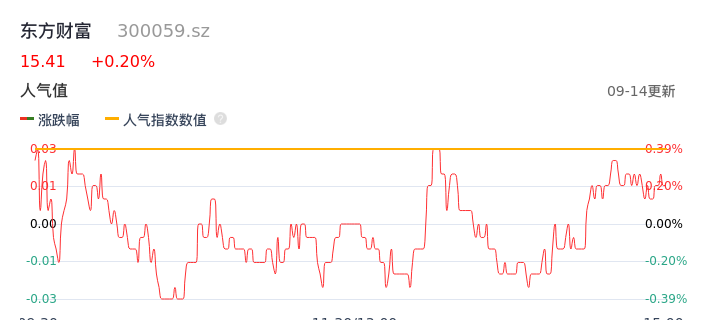 09月14日,东方财富收报15.41,股价涨幅0.20%,成交金额18.05亿元,换手率0.87%。