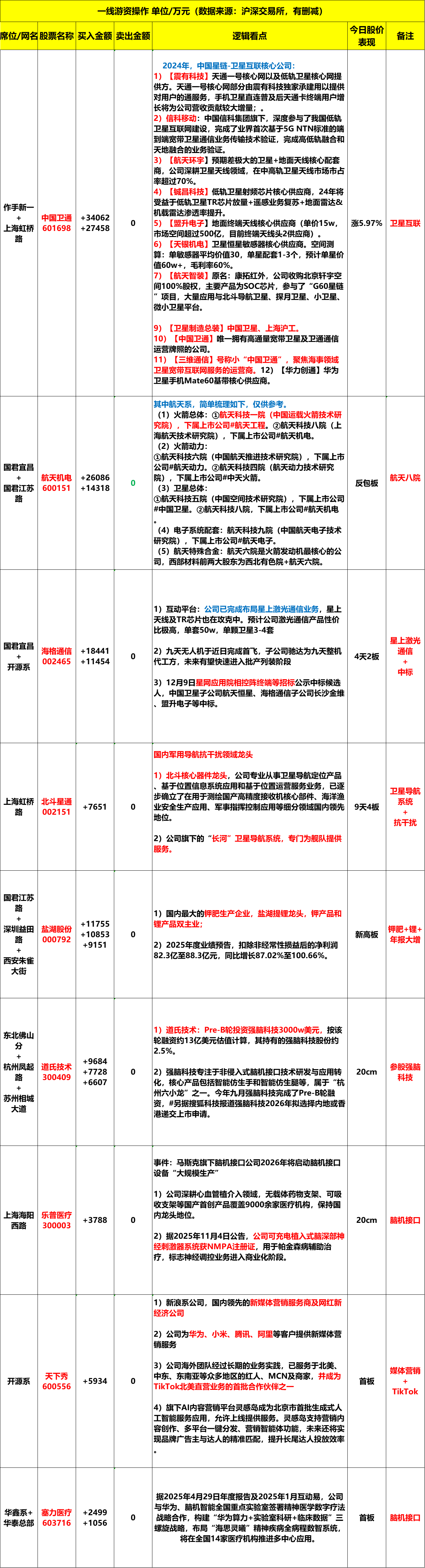 2)脑机接口三十余只涨停,保险新华保险、中国太保续创历史新高,抖音火山AI应用蓝色光标2个20cm。这种重要时间点(周末、月末、季末、年末、节假日)前后一天异动的板块,要多注意。