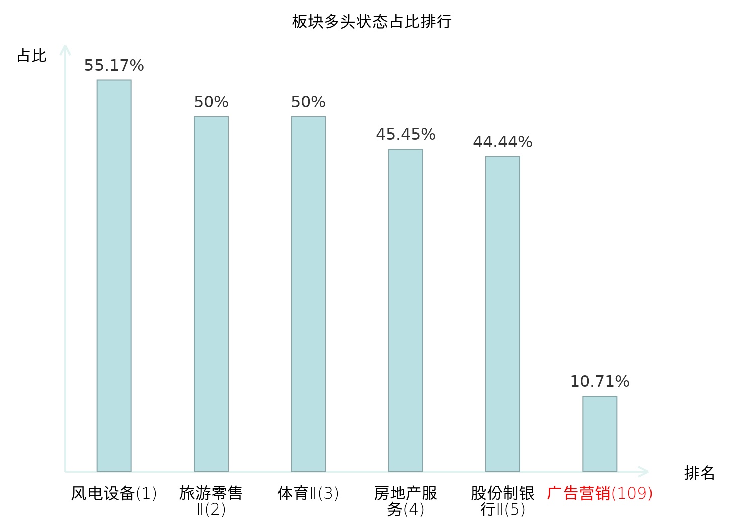 从主力宝信号数据分析,天龙集团所属的广告营销板块中共3只股票处于主力多头状态,主力多头状态占比在全行业中排名第109位,较昨日上升4位。较高的排名表明主力对于该板块整体看多意愿较强;此次排名的小幅上升可能反映了主力对该板块态度的边际改善。全市场所有行业板块中主力多头状态占比排名中,风电设备板块位居第一;保险Ⅱ板块名次提升最快,较昨日上升64位。这些变动揭示了不同行业间主力资金动向的结构性差异,为投资者评估板块相对强弱及潜在轮动机会提供了客观依据。