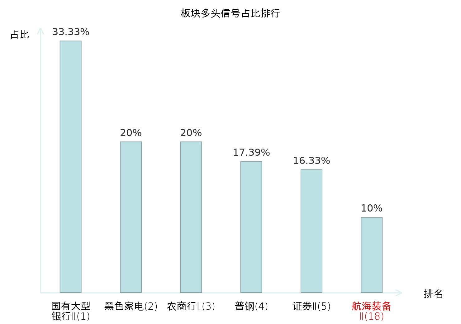 从主力宝信号数据分析,海兰信所属的航海装备Ⅱ板块中共有1只股票发出主力多头信号,主力多头信号占比在全行业中排名第18位,较昨日上升98位。较高的排名表明主力当日买入意愿较强,此次排名上升可能反映了主力对该板块态度的积极变化,为主力资金动向提供了重要的市场情绪线索。全市场所有行业板块中主力多头信号占比排名中,国有大型银行Ⅱ板块位居第一;国有大型银行Ⅱ板块名次提升最快,较昨日上升123位。这些变动揭示了不同行业间主力资金偏好的变化,有助于投资者理解当前市场的动态和趋势。