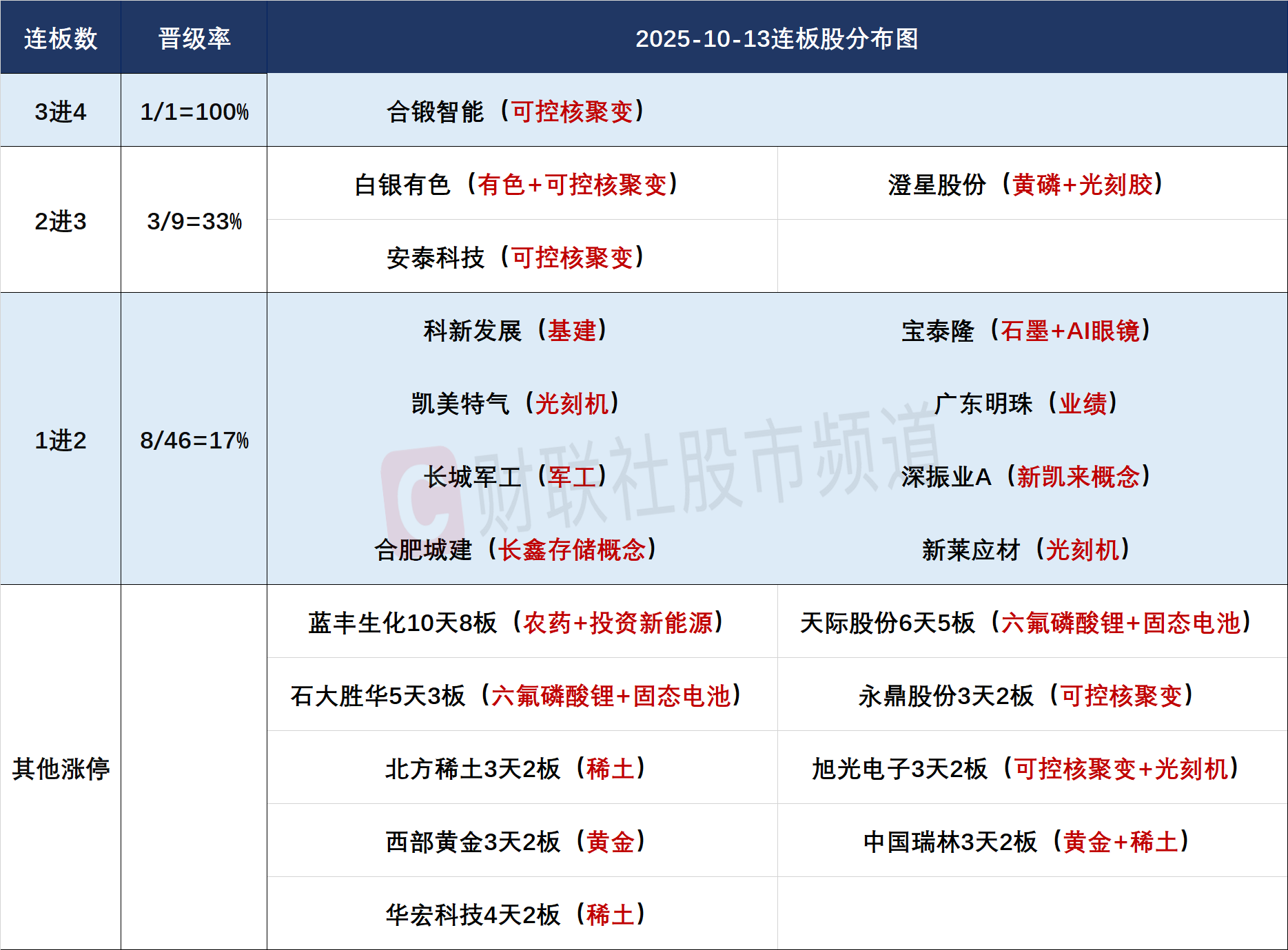 个股方面,市场全天震荡回升,短线情绪回暖,合锻智能晋级4连板,蓝丰生化上演“地天板”录得10天8板,天际股份反包涨停走出6天5板。