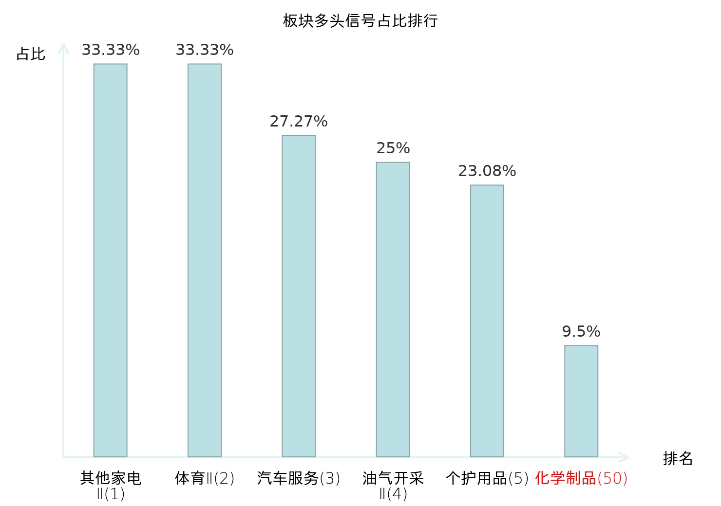 从主力宝信号数据分析,安诺其所属的化学制品板块中共有17只股票发出主力多头信号,主力多头信号占比在全行业中排名第50位,较昨日下降1位。排名较高表明主力当日买入意愿较强,但此次排名下降可能反映了主力对该板块态度的微调。全市场所有行业板块中,主力多头信号占比排名中,其他家电Ⅱ板块位居第一。体育Ⅱ板块名次提升最快,较昨日上升128位。这些变动揭示了不同行业间主力资金动向的变化,为投资者提供了关于市场情绪和潜在投资机会的重要线索。