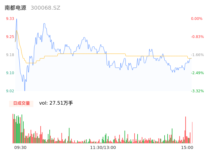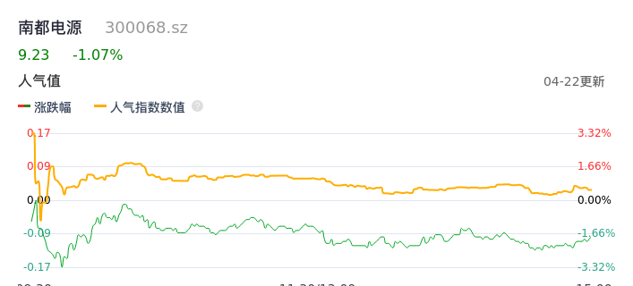 04月22日,南都电源收报9.23,股价涨幅-1.07%,成交金额2.52亿元,换手率3.31%。