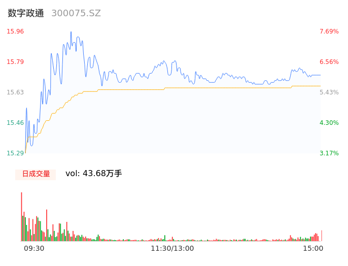 05月17日,数字政通收报15.72,股价涨幅6.07%,成交金额6.84亿元,换手率8.49%。