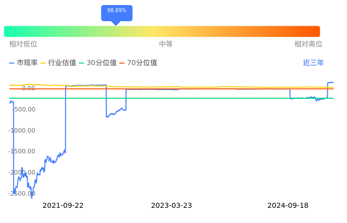 2024年09月18日,国民技术下跌2.62%收于9.31,今日成交金额1.20亿。下文将从市盈率PETTM、市净率PB、市现率3个角度去分析公司估值情况。