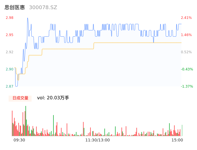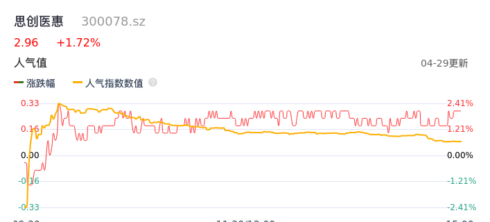 04月29日,思创医惠收报2.96,股价涨幅1.72%,成交金额5894.71万元,换手率2.27%。
