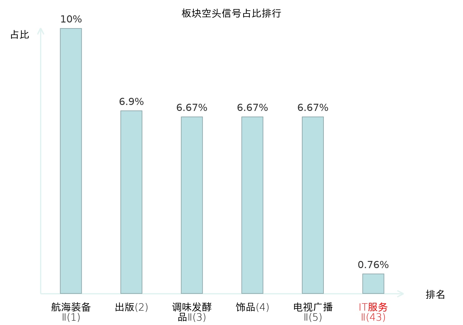 全市场所有行业板块中主力空头信号占比排名中,航海装备Ⅱ板块位居第一。自动化设备板块名次提升最快,较昨日上升102位。