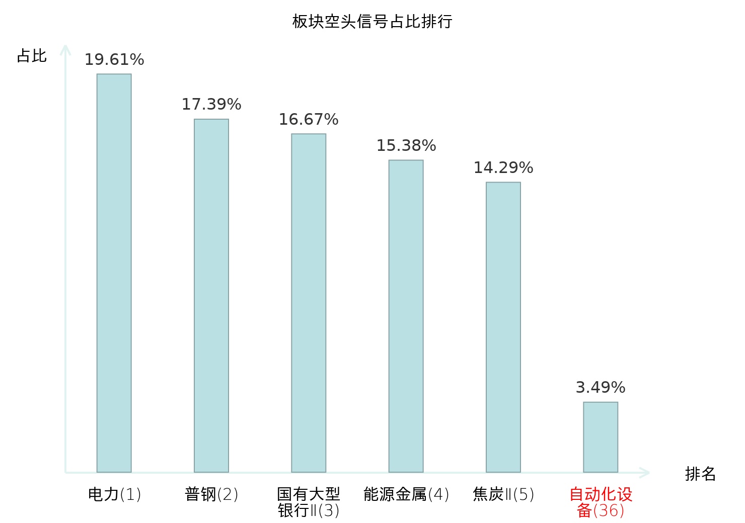 全市场所有行业板块中主力空头信号占比排名中,电力板块位居第一。服装家纺板块名次提升最快,较昨日上升107位。