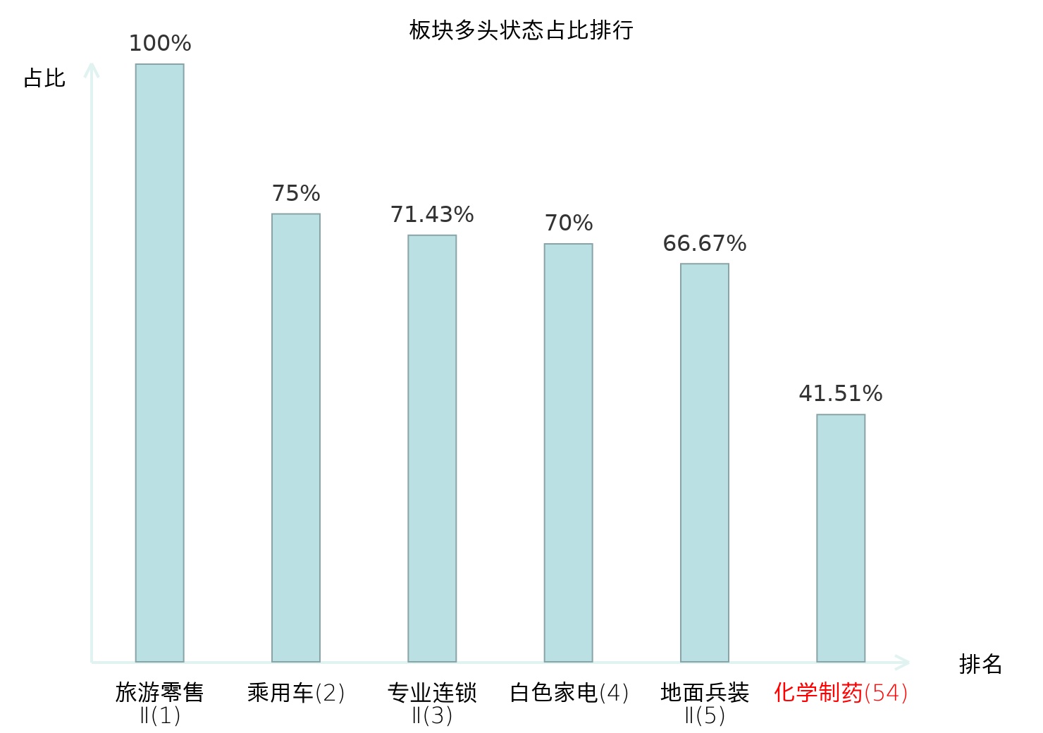 全市场所有行业板块中主力多头状态占比排名中,旅游零售Ⅱ板块位居第一。焦炭Ⅱ板块名次提升最快,较昨日上升105位。