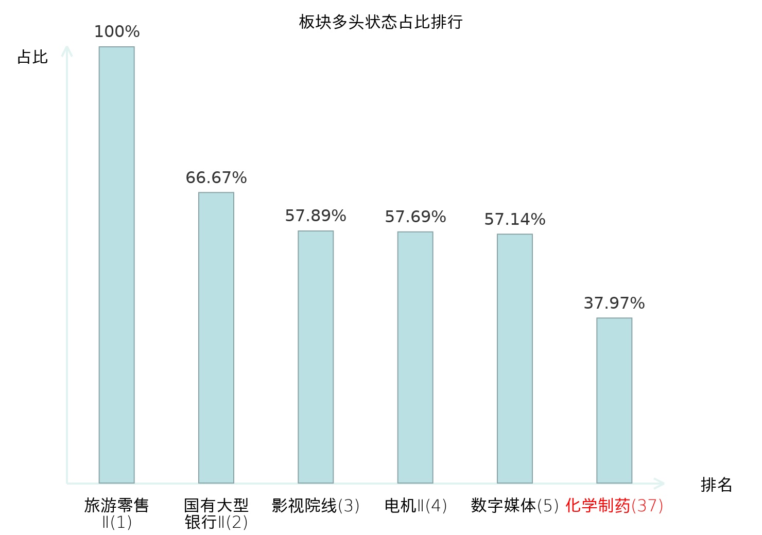 从主力宝信号数据分析,康芝药业所属的化学制药板块中共有60只股票处于主力多头状态,主力多头状态占比在全行业中排名第37位,较昨日上升3位。排名的提升表明主力对于该板块的看多意愿有所增强。全市场所有行业板块中,旅游零售Ⅱ板块主力多头状态占比最高,位居第一;专业连锁Ⅱ板块名次提升最快,较昨日上升56位。这些变化揭示了不同行业间主力资金的态度调整,为投资者提供了重要的市场参考信息。