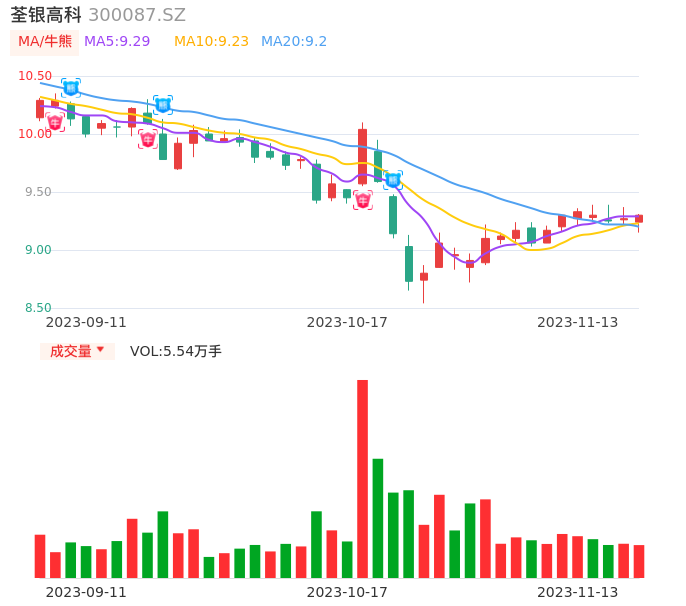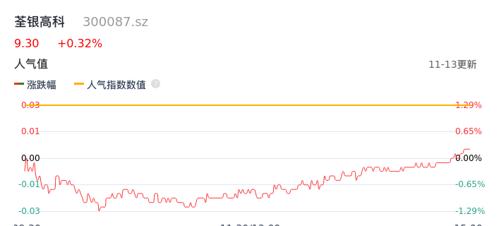 11月13日,荃银高科收报9.30,股价涨幅0.32%,成交金额5103.14万元,换手率0.62%。