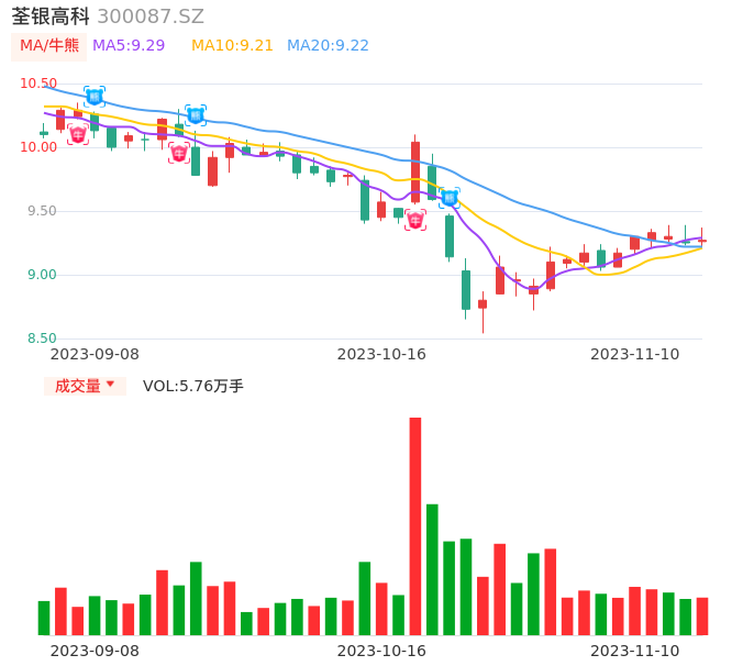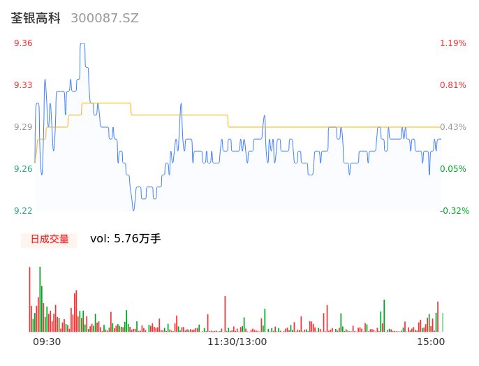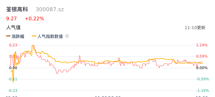 11月10日,荃银高科收报9.27,股价涨幅0.22%,成交金额5351.27万元,换手率0.64%。