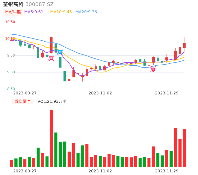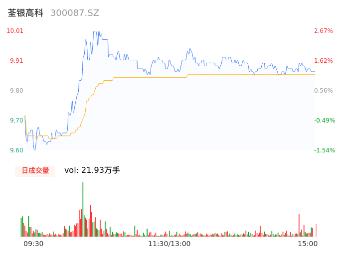 11月29日,荃银高科收报9.87,股价涨幅1.23%,成交金额2.16亿元,换手率2.45%。