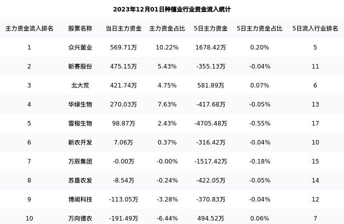 从主力资金流向来看,种植业行业今日主力资金流入3.75亿元,在所有申万二级行业中排名:95/131。