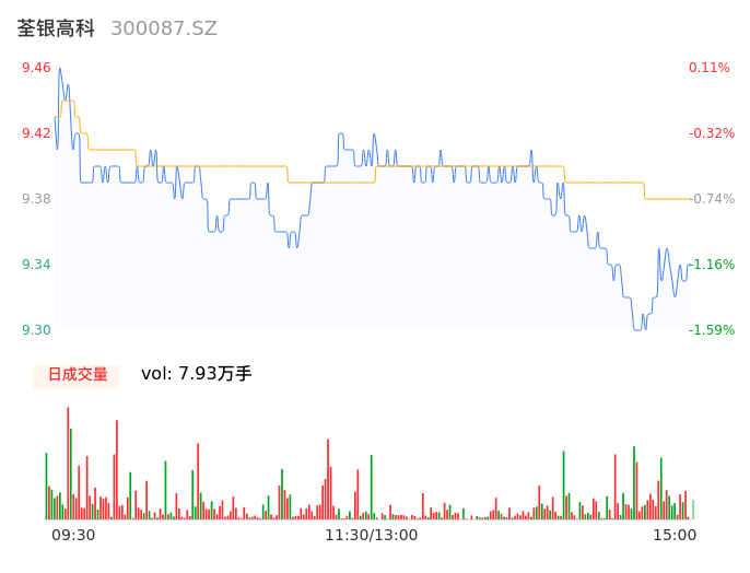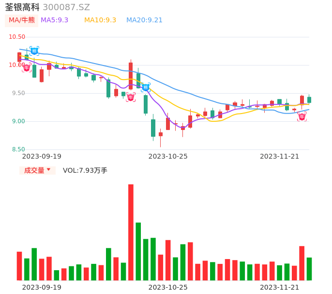 11月21日,荃银高科收报9.33,股价涨幅-1.27%,成交金额7440.10万元,换手率0.89%。