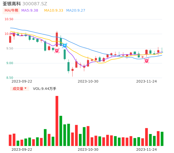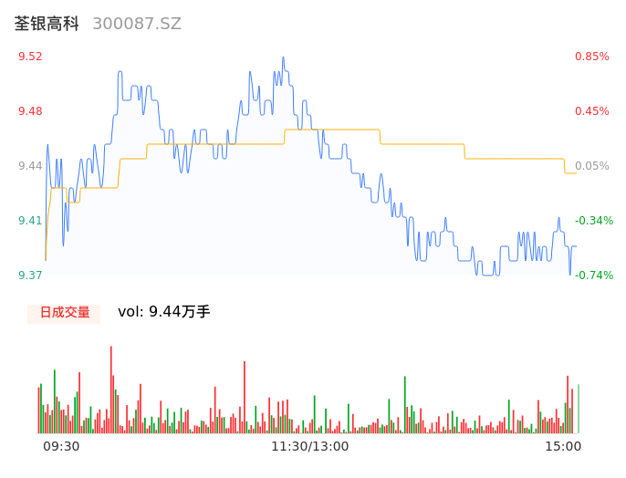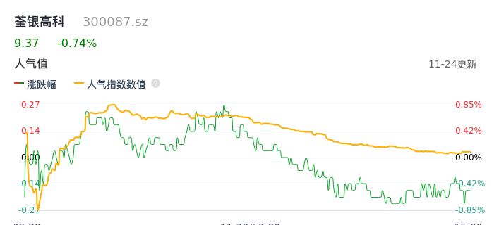 11月24日,荃银高科收报9.37,股价涨幅-0.74%,成交金额8912.59万元,换手率1.05%。