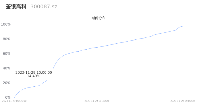 300087荃银高科2023年11月29日成交21.93万手,成交金额2.16亿元,相较昨日放量5.75万手,换手率2.45%,成交清淡。