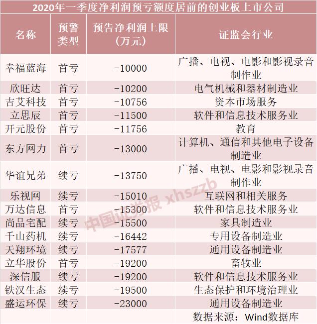 此外,华谊兄弟(300027)、乐视网(300104)、万达信息(300168)、东方网力(300367)等16家上市公司预计2020年一季度净利润亏损超过1亿元。